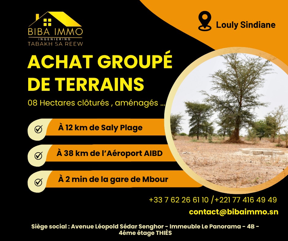 La zone de Thiès, en pleine expansion, est idéale pour un investissement durable. Nous proposons des sites viabilisés, à prix attractif, situés dans un environnement calme et agréable, parfaits pour concrétiser vos projets immobiliers.